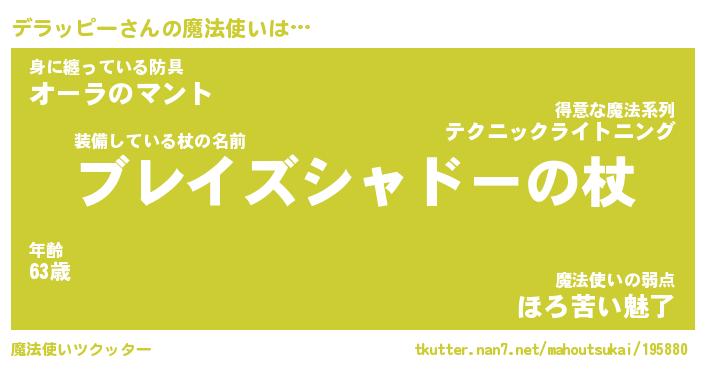 | 男性向けラノベタイトル風あだ名 | 『デラッピーの憂鬱』 |