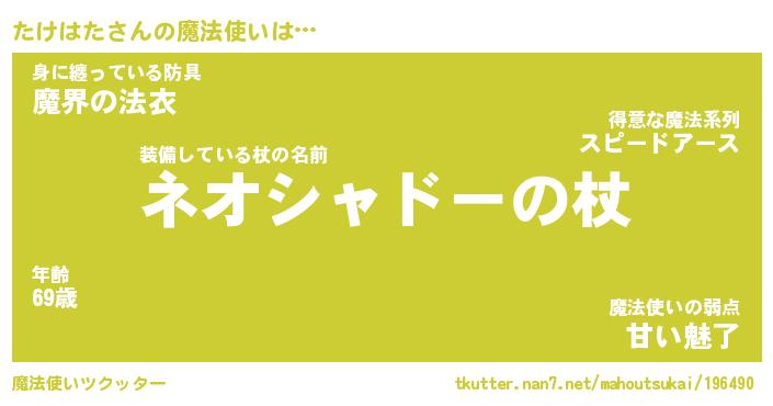 | ファンタジー風あだ名 | 『タケフェル』『エターナルタケハター』 |