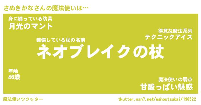 | ヒーロー風カッコイイあだ名 | 『スーパーサヌキカナ』『幻影騎士サヌ』 |