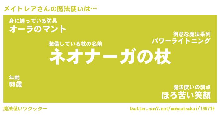 | ポケモン風あだ名 | 『メイチュウ』『メイトダネ』 |
