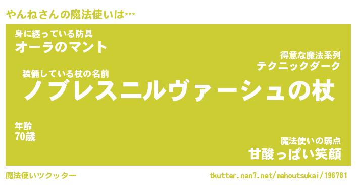 | ファンタジー風あだ名 | 『ヤンフェル』『エターナルヤンネー』 |