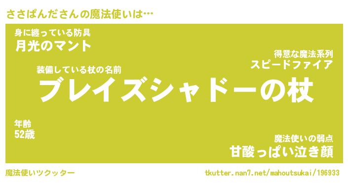 | 伝説のあだ名 | 『伝説の竜騎士ささぱんだ』 |