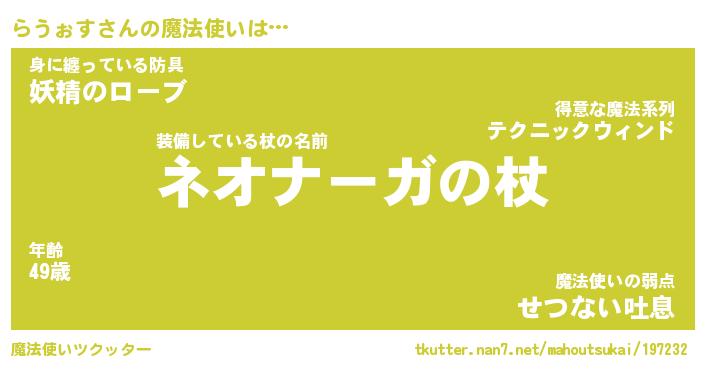 | ファンタジー風あだ名 | 『ラウフェル』『エターナルラウォスー』 |
