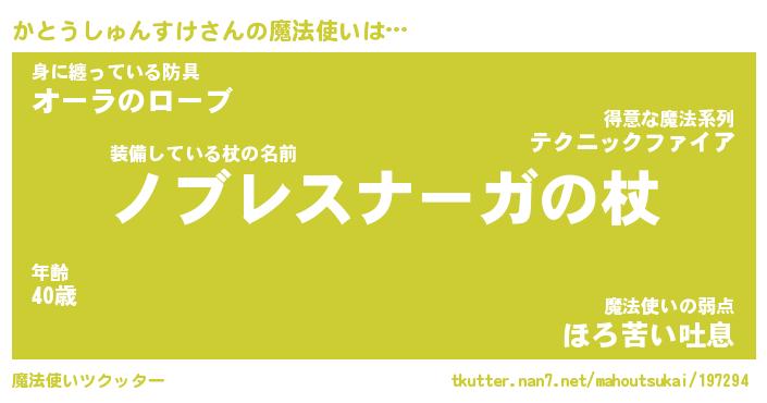 | ツイッター | かとうしゅんすけさんのツイッターID『dendenmushi_nyan』 |