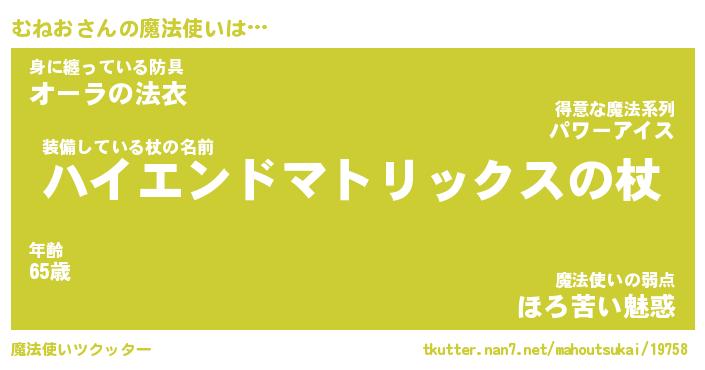 | 男性向けラノベタイトル風あだ名 | 『ムネオアートオンライン』 |