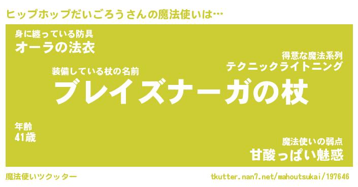 | 胡散臭い通販商品みたいなあだ名 | 『必ず成功する霊験あらたかなお札…その名も「ヒップホップだいごろう」』 |