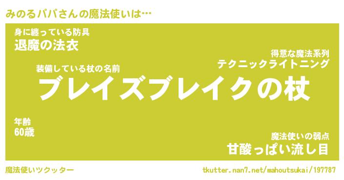 | 伝説のあだ名 | 『伝説の傭兵みのるパパ』 |