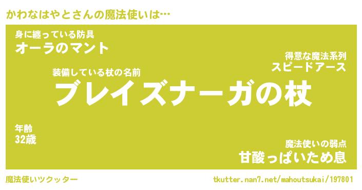 | ファンタジー風あだ名 | 『カワフェル』『ファントムカワス』 |