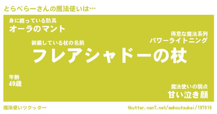| ファンタジー風あだ名 | 『トラフェル』『エターナルトラベラーー』 |