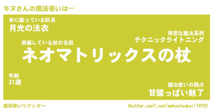 | ファンタジー風あだ名 | 『キヌフェル』『エターナルキヌー』 |