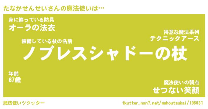| ファンタジー風あだ名 | 『タナフェル』『ファントムタナス』 |