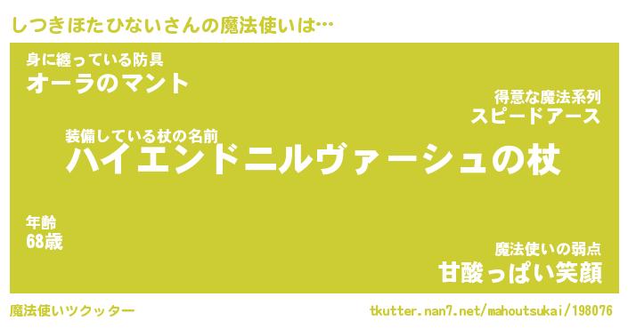| 男性向けラノベタイトル風あだ名 | 『シツキホタヒナイアートオンライン』 |