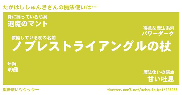 | 男性向けラノベタイトル風あだ名 | 『タカハシシュンキアートオンライン』 |