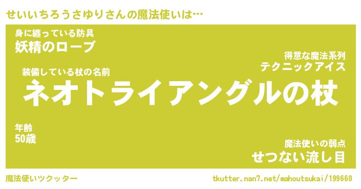 | 伝説のあだ名 | 『不死鳥のスナイパーせいいちろうさゆり』 |