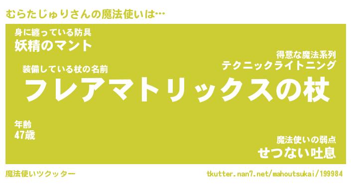 | 伝説のあだ名 | 『伝説の竜騎士むらたじゅり』 |