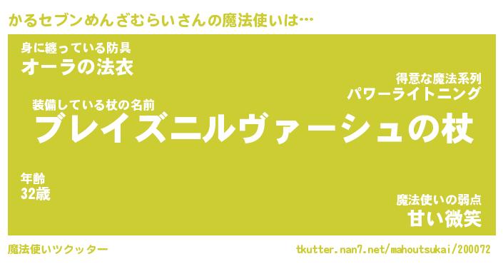 | 男性向けラノベタイトル風あだ名 | 『かるセブンめんざむらいの憂鬱』 |