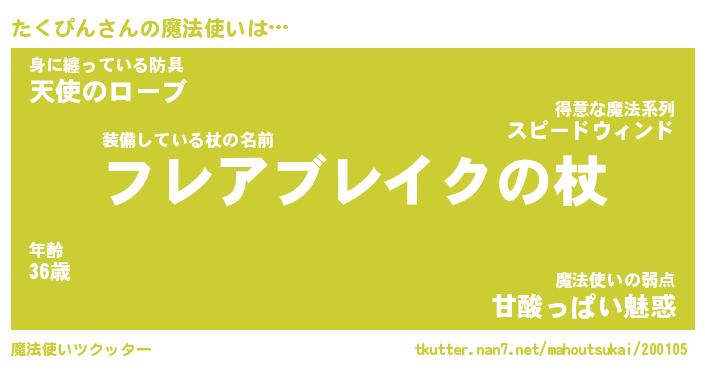 | ファンタジー風あだ名 | 『タクフェル』『エターナルタクピンー』 |