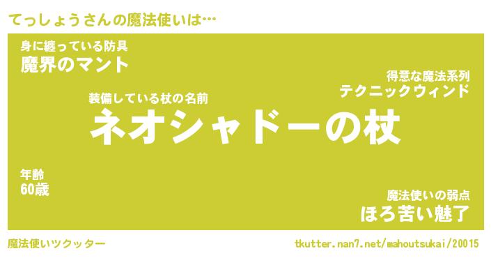 | 男性向けラノベタイトル風あだ名 | 『てっしょうの憂鬱』 |