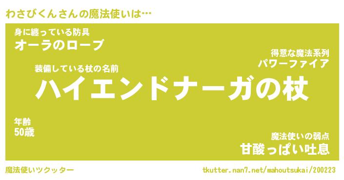 | ファンタジー風あだ名 | 『ワサフェル』『エターナルワサビクンー』 |