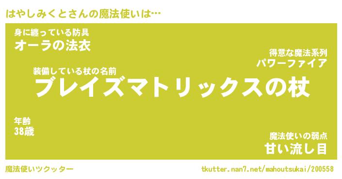 | ツイッター | はやしみくとさんのツイッターID『tsukushi_man』 |