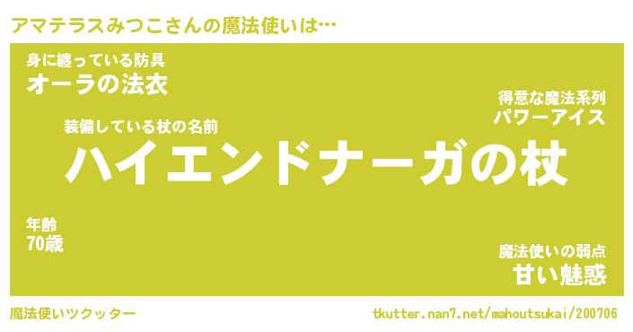 | 欧米人風あだ名 | 『マイケルアマテラスみつこ』 |