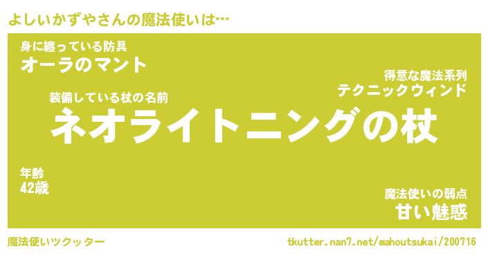 | ヒーロー風カッコイイあだ名 | 『スーパーヨシイカズヤ』『銀牙騎士ヨシ』 |