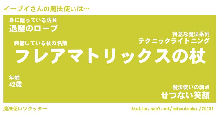 | ファンタジー風あだ名 | 『イーフェル』『エターナルイーブイー』 |