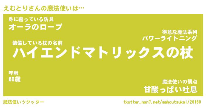 | 伝説のあだ名 | 『封印されし竜騎士えむとり』 |