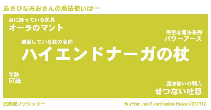 | 伝説のあだ名 | 『封印されしスナイパーあさひなみお』 |