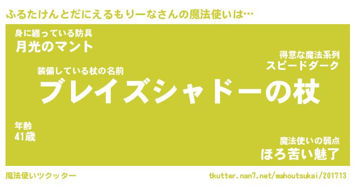 | 男性向けラノベタイトル風あだ名 | 『ふるたけんとだにえるもりーなの憂鬱』 |