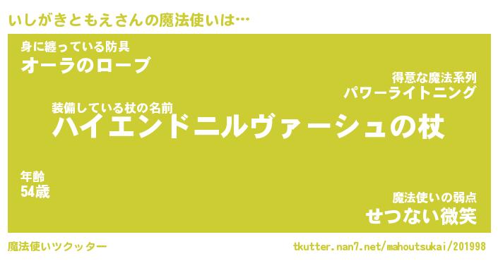 | 肩書あだ名 | 『いしがきともえ御曹司』 |