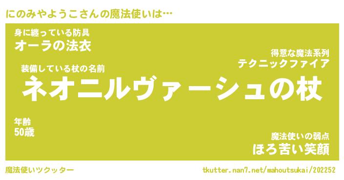 | 男性向けラノベタイトル風あだ名 | 『にのみやようこの憂鬱』 |