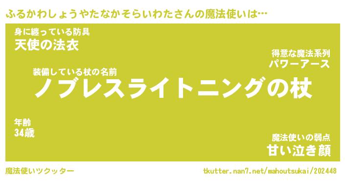 | 胡散臭い通販商品みたいなあだ名 | 『億万長者になれるブレスレット…その名も「ふるかわしょうやたなかそらいわた」』 |