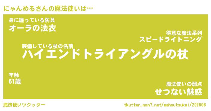 | 肩書あだ名 | 『にゃんめる店長』『にゃんめる総理大臣』 |