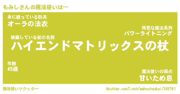 | ファンタジー風あだ名 | 『モミフェル』『エターナルモミシー』 |