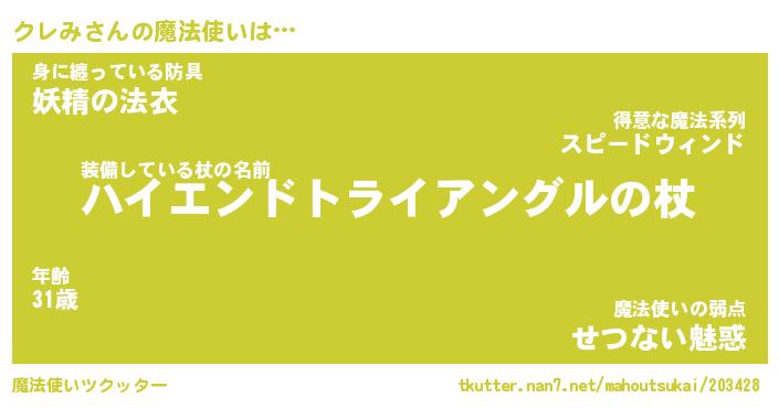 | ファンタジー風あだ名 | 『クレフェル』『エターナルクレミー』 |
