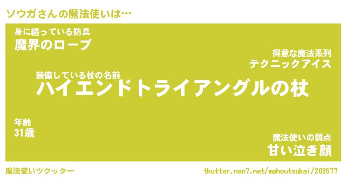 | ファンタジー風あだ名 | 『ソウフェル』『エターナルソウガー』 |