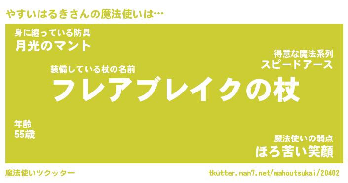 | ヒーロー風カッコイイあだ名 | 『スーパーヤスイハルキ』『魔戒騎士ヤス』 |