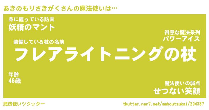 | 男性向けラノベタイトル風あだ名 | 『あきのもりさきがくの憂鬱』 |