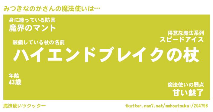 | 男性向けラノベタイトル風あだ名 | 『ミツキナノカアートオンライン』 |