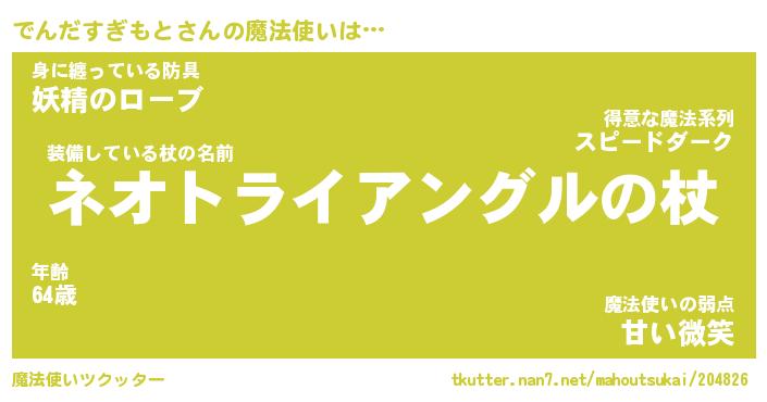| 男性向けラノベタイトル風あだ名 | 『でんだすぎもとの憂鬱』 |