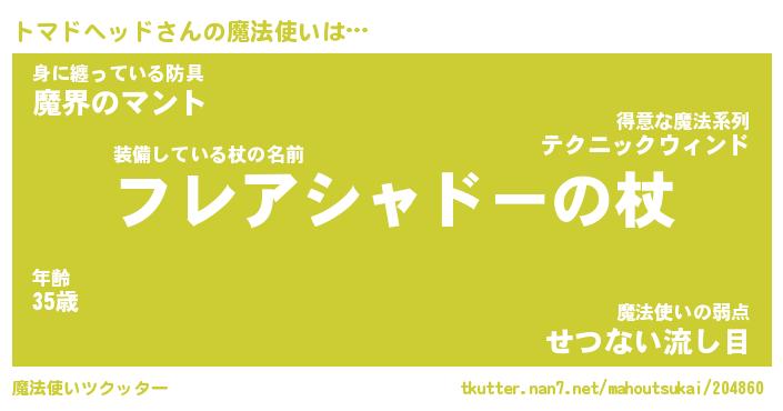 | 男性向けラノベタイトル風あだ名 | 『トマドヘッドの憂鬱』 |