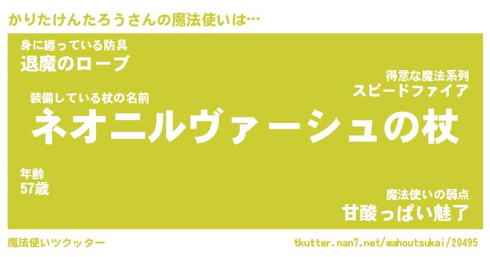 | 男性向けラノベタイトル風あだ名 | 『かりたけんたろうの憂鬱』 |