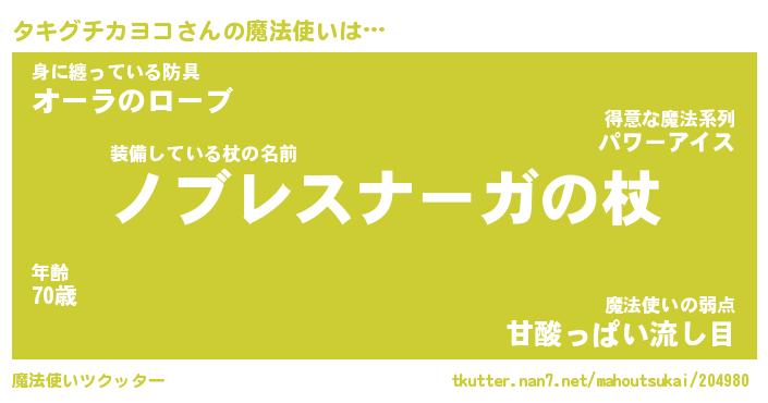 | 男性向けラノベタイトル風あだ名 | 『タキグチカヨコアートオンライン』 |