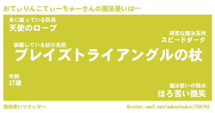 | 男性向けラノベタイトル風あだ名 | 『おてぃりんこてぃーちゃーの憂鬱』 |