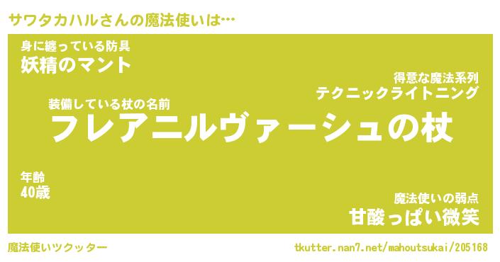 | ヒーロー風カッコイイあだ名 | 『スーパーサワタカハル』『魔戒騎士サワ』 |