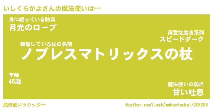 | 男性向けラノベタイトル風あだ名 | 『イシクラカヨアートオンライン』 |