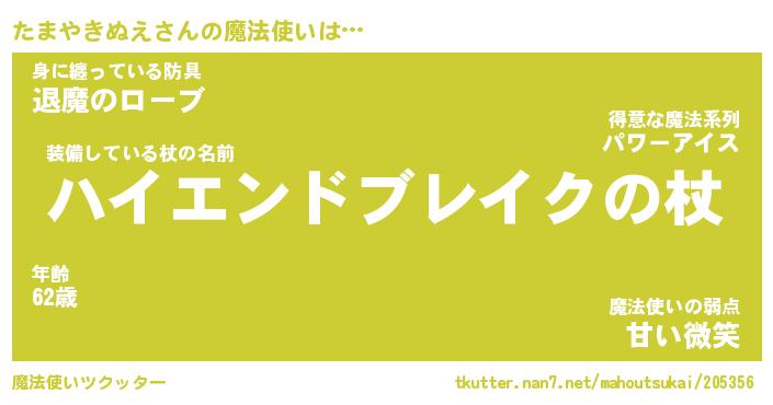 | 伝説のあだ名 | 『封印されし傭兵たまやきぬえ』 |