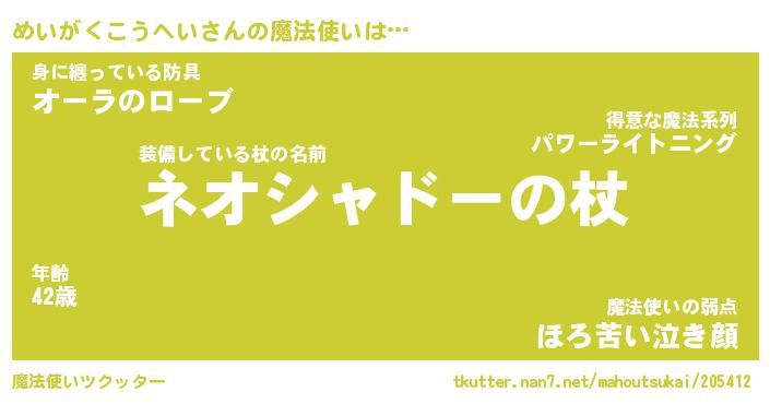 | ヘコむあだ名 | 『めいにー』『なまこ酢』『めい太郎』 |