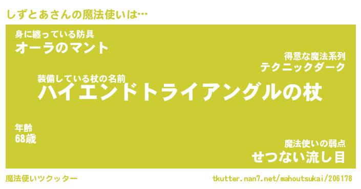 | ファンタジー風あだ名 | 『シズフェル』『エターナルシズトアー』 |